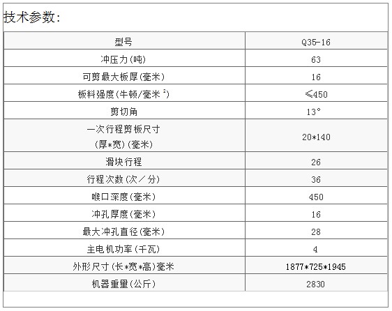 | Q35-16機械聯合沖剪機 | |||||||||||||||||||||||